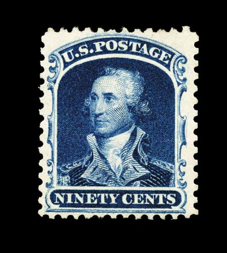 95 og 47 image#47, 90c Deep blue reprint, without gum as issued, well centered, strikingly intense color and an excellent clarity of impression on bright crisp paper, unusually even and intact perforations, very fine; an especially rare stamp in such choice condition; only 454 issued. (Image) 4,500.00