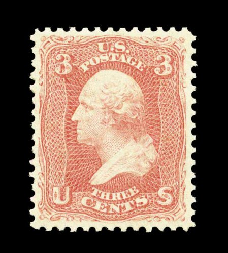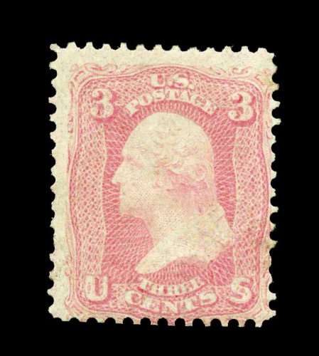 111 nh 64b image#64b, 3c Rose pink, incredibly well centered within large margins, magnificently bright and fresh, with prooflike Rose pink color and an extraordinarily sharp impression on immaculate paper, pristine full o.g., never hinged, extremely fine; the epitome of a "post office" fresh gem; obviously a very rare and desirable stamp in such outstanding quality; 1990 PF certificate. (Image) for hinged 550.00