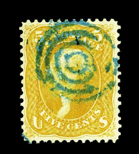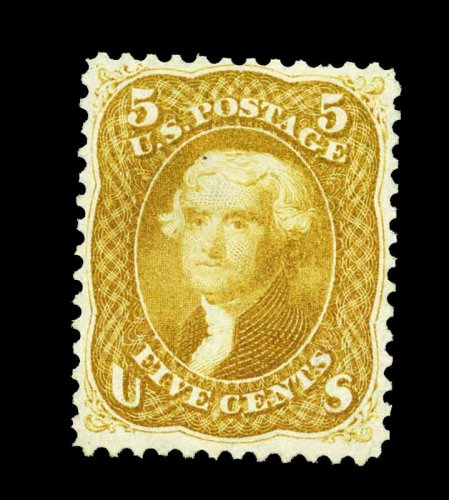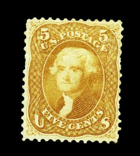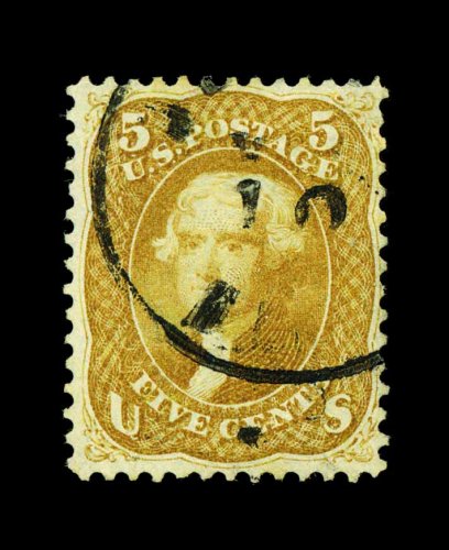 118 O 67a image#67a, 5c Brown yellow, used, quite well centered amid considerably larger margins than typically associated with any of the various Five Cent 1861 shades, especially deep and luxuriant color on bright paper, town c.d.s., very fine and choice; 1986 PF certificate. (Image) 850.00