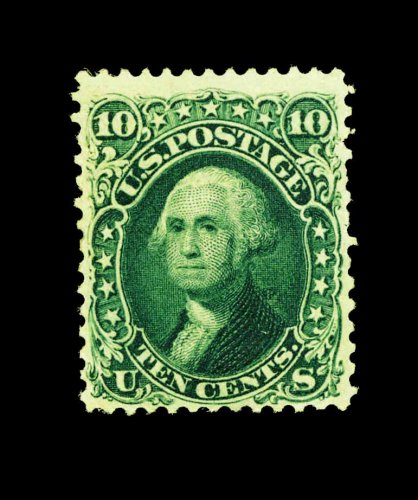 121 og 68a image#68a, 10c Dark green, extraordinarily fresh mint example of this distinctive shade variety, gorgeous intense color and a deeply etched impression, attractively centered, full o.g., lightly hinged, couple of slightly nibbed perforations at right, very fine; a very scarce mint stamp; 1986 PF certificate. (Image) 800.00