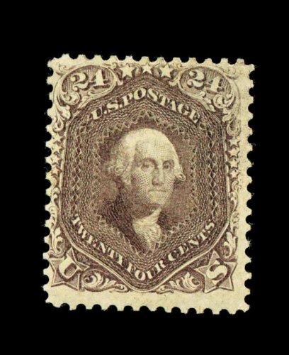 130 og 70c image#70c, 24c Violet on thin paper, an exciting mint example of one of the most elusive stamps of the 19th century to find in any quality, let alone in the exceptional condition of the copy offered here, possessing a remarkable overall freshness, with absolutely gorgeous and unmistakable Violet color, plus its impression is highly detailed on bright paper, quite well centered as most existing mint examples have the design impinged by their perforations, full o.g., lightly hinged, very fine; an enormously rare and desirable original gum example of the 1861 Twenty Four Cent Violet; 1993 PF certificate. (Image) 9,500.00