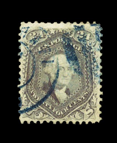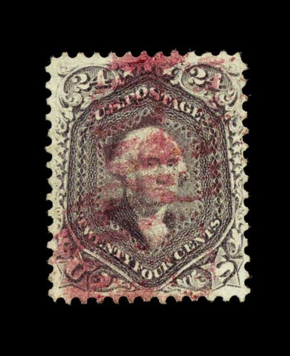 132 O 70d image#70d, 24c Pale gray violet on thin paper, used, spectacularly intense color which is rarely seen on this, the most elusive of all the 1861 Twenty Four Cent shade varieties, unusually strong impression as well, quite well centered within large margins, black rimless grid postmark, very fine and quite choice; 1985 PF certificate; ex-Koppersmith. (Image) 1,250.00