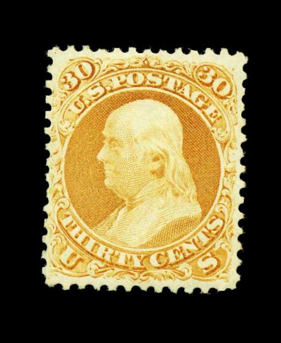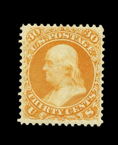 134 og 71 image#71, 30c Orange, a brilliantly fresh mint example, featuring absolutely gorgeous intense color and a much strong impression than usual, wonderfully well centered and much larger margined than typically encountered, full o.g. that has been relatively lightly hinged, a very fine and choice original gum Thirty Cent 1861 issue; 1993 PF certificate. (Image) 1,600.00