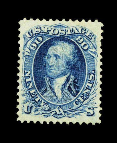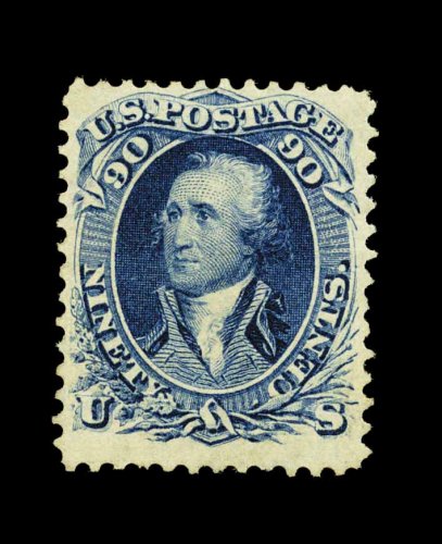 128 og 70b image#70b, 24c Steel blue, an enormously rare mint example of this distinctive and sought-after shade variety, possessing outstanding centering amid uncharacteristically large margins, sumptuously rich color in an intense and unmistakable Steel blue shade, plus its impression is highly detailed on bright paper, part o.g., extremely fine; the rarity and desirability of this stamp in mint condition was clearly illustrated by the record $33,000.00 realization we achieved for a gem full original gum Twenty Four Cent Steel Blue in our March 2002 "Premier" sale, while this stamp has only part o.g., this still is the second finest quality mint #70b we have ever offered and, in our opinion, we doubt more than ten examples exist both in this premium quality and still retaining any part of its original gum; 1991 PF certificate. (Image) 8,000.00