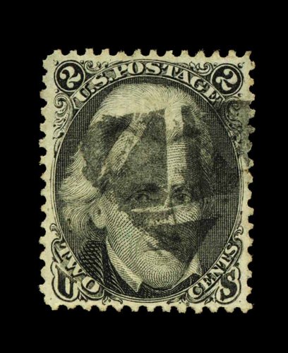 140 O 73 image#73, 2c Black, used, exceptionally well centered, interesting crisp central strike of a segmented triangular postmark, extremely fine; a select used example; 1983 APS certificate. (Image) 50.00