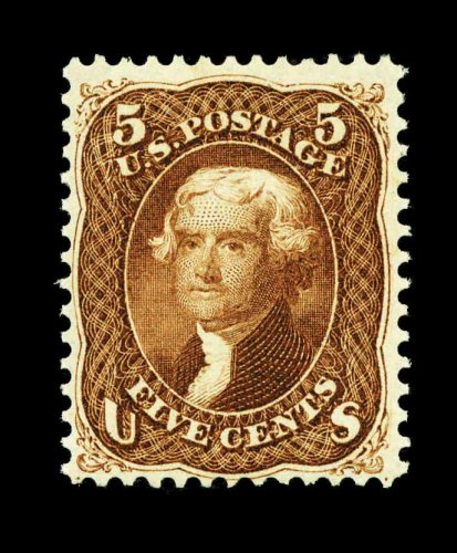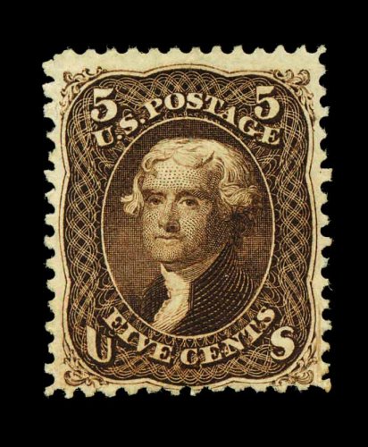 145 og 76 image#76, 5c Brown, the mint single offered here is the most perfectly centered original gum example of the 1863 Five Cent Brown we have ever seen, plus its margins are uncharacteristically wide, with truly prooflike color and impression on fabulously bright and fresh paper, full clean o.g., lightly hinged, an extremely fine gem whose equal may not exist; 1995 PF certificate; ex-Morris. (Image) 1,200.00