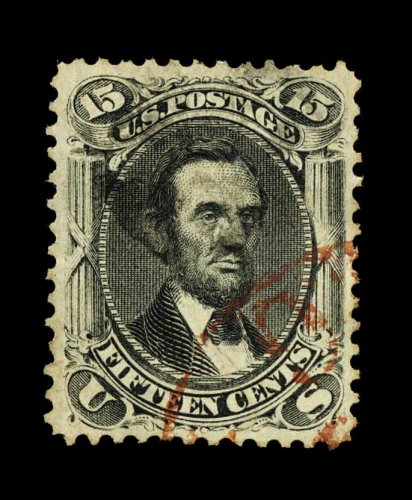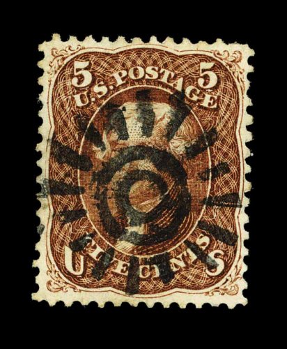 152 O 78c image#78c, 24c Blackish violet, a select used example of one of the rarest and most elusive of all the famous shade varieties found on any 19th century U.S. stamp, being far more difficult to find than the 1857 Indian red, 1861 Pigeon blood pink or 1861 24c Violet, featuring an extraordinary overall freshness for a used stamp, with incredibly rich unmistakable Blackish violet color and a razor-sharp impression on brilliantly white paper, marvelously well centered and margined for this, as most known examples are quite poorly centered, excellent strike of a black crossroads postmark, plus just a trace of a red cancel at bottom left, very fine and exceedingly choice; given the fact that there are only two or three known mint examples of this rare color variety, a used example seems to be an excellent alternative for most collectors, particularly in this outstanding quality; 1993 PSE certificate. (Image) 2,250.00