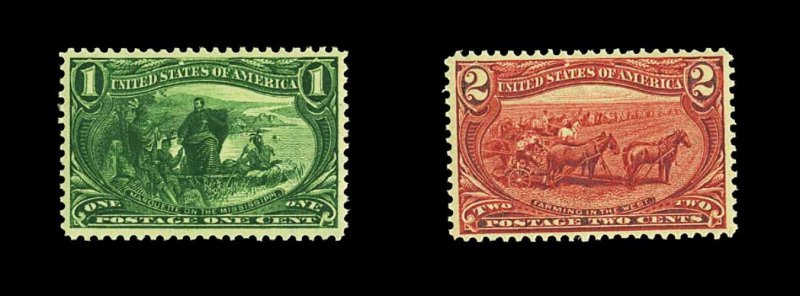 269 nh 285-286 image#285-286, 1c and 2c Trans-Mississippis, each very well centered and with strong colors, o.g., n.h., extremely fine; both with 2002 PSE certificates. (Image) 115.00