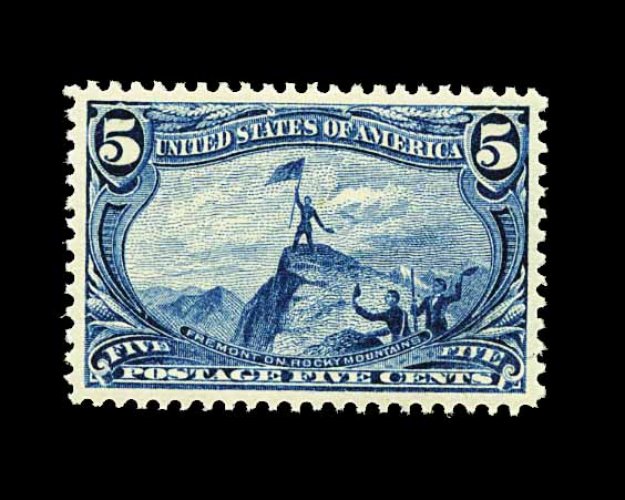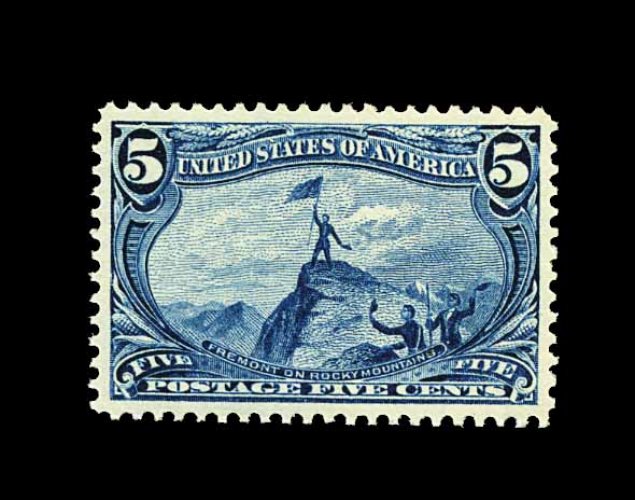 276 nh 288 image#288, 5c Trans-Mississippi, excellent centering amid uncharacteristically large margins, deep intense color and a highly detailed impression, o.g., n.h., extremely fine; a lovely gem; 2000 PF certificate for a pair, this being the bottom stamp. (Image) 280.00