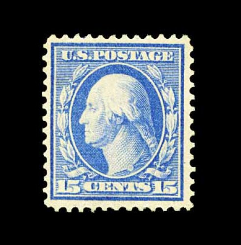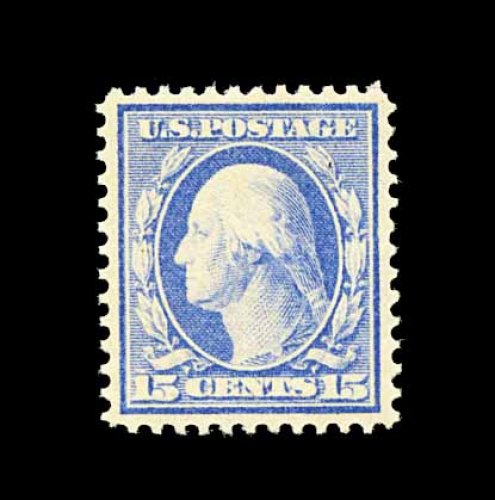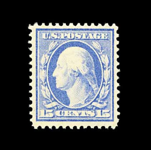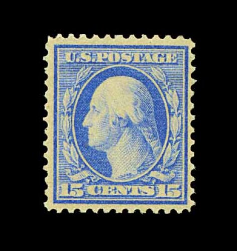379 nh 382 image#382, 15c Pale ultramarine, precisely centered, lovely fresh color and paper, o.g., n.h., extremely fine; a stamp for the collector who realizes just how difficult this stamp is to find in premium never hinged condition; 2001 PF certificate for a block of four, this being the bottom right stamp. (Image) 500.00