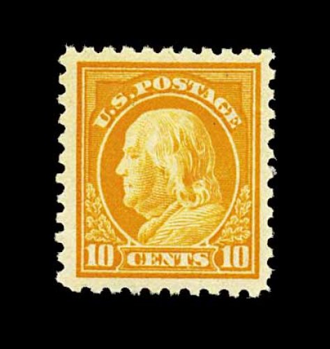 465 nh 472 image#472, 10c Orange yellow, brilliant color, well centered within extra-large margins, unblemished o.g., n.h., extremely fine; photocopy of a 2001 PF certificate for a block of four, this being the bottom left stamp. (Image) 200.00