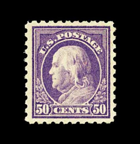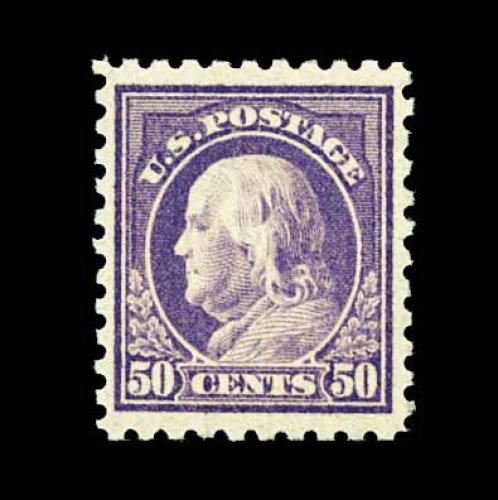 470 nh 477 image#477, 50c Light violet, wonderfully well centered within large margins, luxuriously rich color, o.g., n.h., extremely fine; premium never hinged examples of this scarce stamp are seldom encountered; 2001 PF certificate (Image) 2,000.00