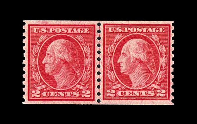 478 nh 492 image#492, 2c Carmine coil, Ty. III, perf. 10 vert., joint line pair, very well centered, intense color, o.g., n.h., extremely fine; 2001 PF certificate. (Image) 100.00