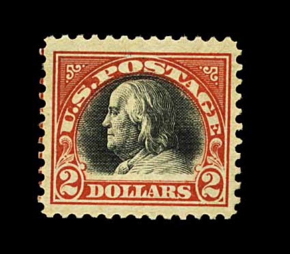 493 nh 523 image#523, $2.00 Orange red and black, a "post office" fresh mint single, possessing strong rich colors and a crisp impression, attractively centered within large margins, o.g., n.h., choice very fine; photocopy of a 2000 PF certificate for a pair, this being the top stamp. (Image) 1,050.00