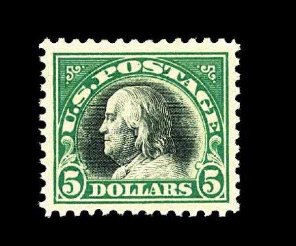 496 nh 524 image#524, $5.00 Deep green and black, wonderfully well centered within large margins, strong rich colors, o.g., n.h., extremely fine; 2002 PSE certificate. (Image) 375.00