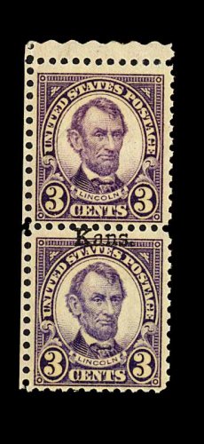 524 og/nh 661a image#661a, 3c "Kans." ovpt., vertical pair one without overprint, top sheet-margin vertical pair, top stamp without overprint, o.g., hinge mark in top selvage may barely affect top stamp, bottom stamp n.h., fine; a rarely seen overprint error; 1977 and 2001 PF certificates. (Image) 450.00