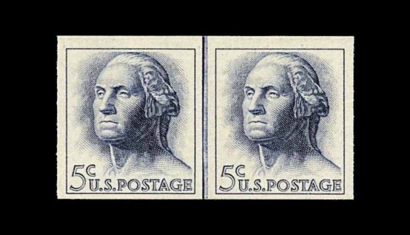 534 nh 1229b image#1229b, 5c Dark blue gray imperforate coil, a rare joint line pair, o.g., n.h., very fine; only a few line pairs of this coil error exist. (Image) 1,250.00