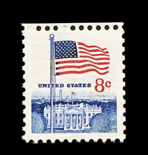 536 nh 1338Fp image#1338Fp, 8c Flag over White House, slate green omitted, o.g., n.h., extremely fine; photocopy of a 1991 PF certificate for the unique sheet from which this came. (Image) 400.00