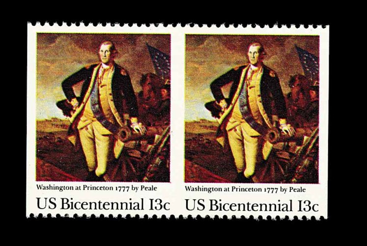 566 nh 1704a image#1704a, 13c Washington at Princeton, horizontal pair, imperforate vertically, o.g., n.h., fresh and very fine; only 20-40 pairs exist according to Datz. (Image) 550.00