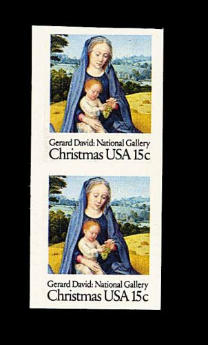 570 nh 1799c image#1799c, 15c Christmas, vertical pair, imperforate between, with blind perforations around the stamp as always, o.g., n.h, very fine; very rare, as only 10 pairs are reported; 1992 PF certificate. (Image) 2,250.00