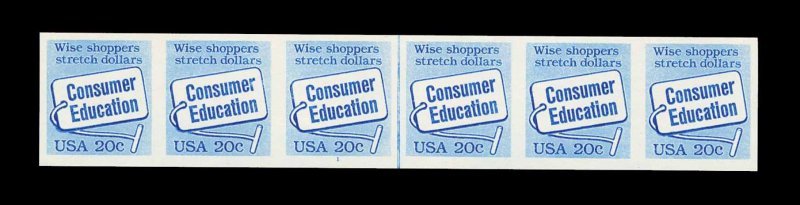 578 nh 2005a image#2005a, 20c Consumer Education coil, imperforate, plate no. 1 line strip of six, o.g., n.h., choice very fine; less than 10 plate no. 1 strips of six are reported to exist. (Image) Datz 750.00