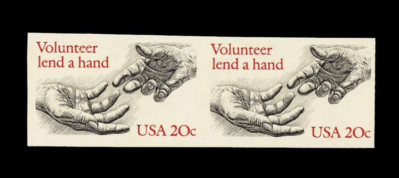 579 nh 2039a image#2039a, 20c Voluntarism, imperforate, horizontal pair, with a solid impression unlike the usual (and less desirable) overinked impressions found on many of these errors, o.g., n.h., very fine; a very scarce error. (Image) 800.00