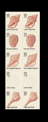 #2121b, 22c Sea Shells booklet pane, violet omitted