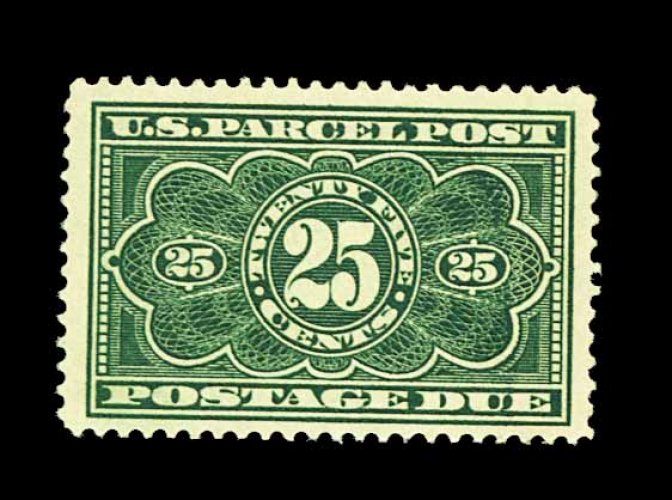 688 nh JQ5 image#JQ5, 25c Parcel Post Postage Due, well centered amid very large margins which are most uncharacteristically of this series, strong color, o.g., n.h., extremely fine; 2002 PF certificate. (Image) 190.00