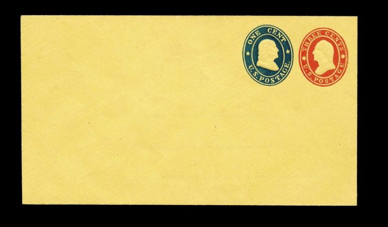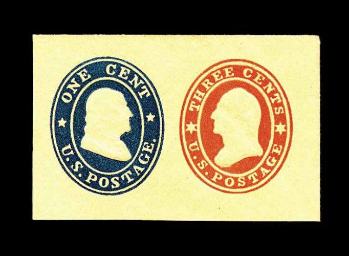 695 ogc U29 image#U29, 3c + 1c Red and blue on buff, star die, die 14, size 5, knife 13, wmk. 1, mint entire, remarkably fresh and crisp, with highly detailed embossing, extremely fine (UPSS #59). (Image) 825.00