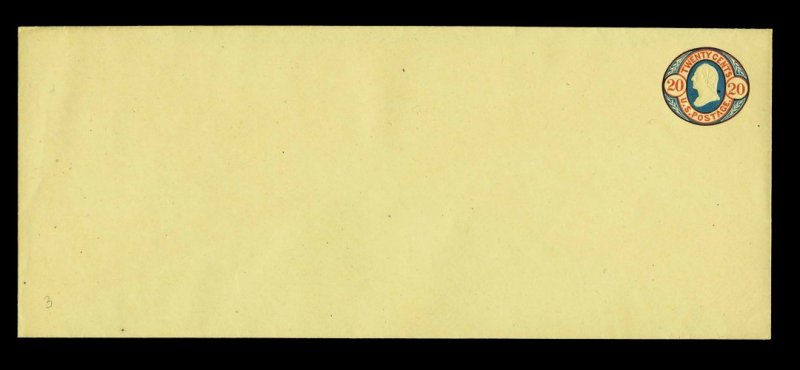 698 ogc U43 image#U43, 20c Red and blue on buff, die 19, size 22, knife 105, wmk. 1, large mint entire, crisp and very fine (UPSS #99). (Image) 575.00