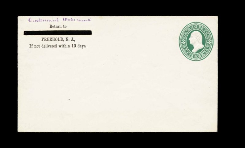 7A, wmk. 3, mint entire with very scarce Centennial watermark, fresh