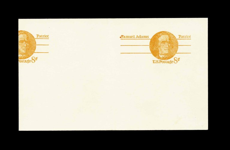 744 ogc UX66a var. image#UX66a var., 8c Adams on coarse paper, double impression, fresh mint card, displaying a normal and additional partial horizontally shifted impression to far left, crisp coarse paper stock, extremely fine and scarce; terribly undercataloged as evidenced by a similar card's $990.00 realization in the Beachboard Sale (Matthew Bennett, Inc., sale #231) (USPCC #S83ba). (Image) USPCC 375.00