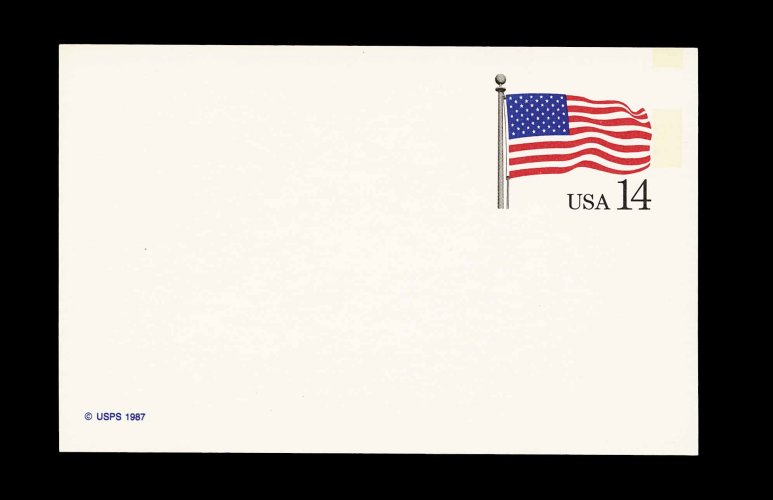 745 ogc UX117 var. image#UX117 var., 14c Flag, double tag impression, fresh mint card, bright and clean, extremely fine and scarce (USPCC #S134aa). (Image) USPCC 250.00