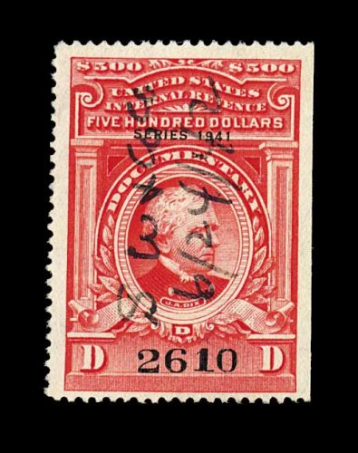 766 ogO Revenue balance of 20th century revenues in a Scott album, includes Documentary stamps from 1914 on, Proprietary, Stock Transfers, Silver Tax, Consular Fee, also some 19th century telegraph stamps, lot also includes a stockbook of over 200 first issue perforated revenues, mixed condition; nothing rare but the catalog value should add up to at least a couple thousand dollars. Est. 300-400