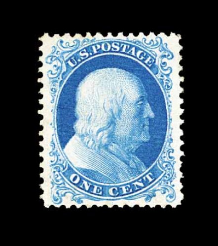 64 og 40 image#40, 1c Bright blue reprint, without gum as issued, incredibly well centered within uncharacteristically large margins, prooflike color and impression on brilliantly white paper, even its perforations are unusually full and intact, extremely fine; actually a very scarce stamp in this gem quality; 2001 PF and PSE certificates. (Image) 625.00