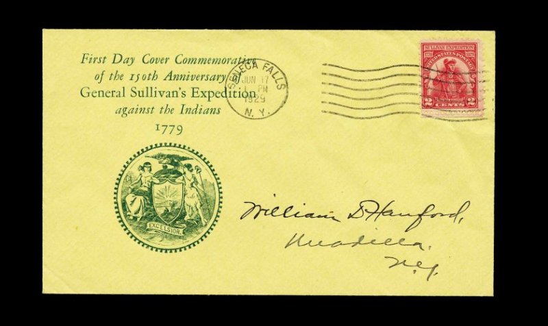 1040 F 657 image#657, 2c Sullivan Expedition, remarkable exhibit collection offered intact, over 300 first day covers, the vast majority of which are cacheted, many of the cachets being represented by all 15 of the official cities (including better cachets such as the first Roscher, which also has an unofficial Syracuse R.P.O.), there are over 30 of the first Elliot cachet, with different cachet varieties and cities, the H.D. Egolf cachet from all cities in blocks of four, plus there are unlisted cachets, unofficial cities, blocks, plate blocks, etc., as well as some interesting non-FDC commercial usages including a crash cover and a cover to Yugoslavia, even a mint stamp in the scarce Lake shade is included, while much of the collection is already written-up on exhibit pages, there are several items (including better) that are not yet mounted, all of which could be melded together to form a strong basis for a medal-winning exhibit. (Image) Est. 4,000-5,000
