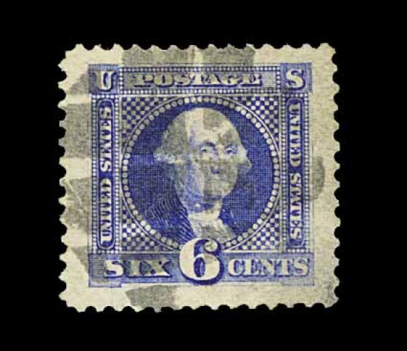 105 O 115 image#115, 6c Ultramarine, flawlessly centered amid incredibly huge margins although expertly reperforated at right, deep rich color, light segmented cork pmk., extremely fine appearance and one of the most striking used examples in existence; clear 1984 PF certificate and a 2001 PF certificate noting the reperforation. (Image) 210.00