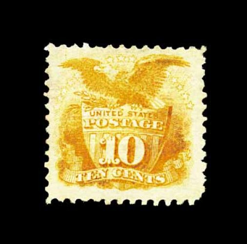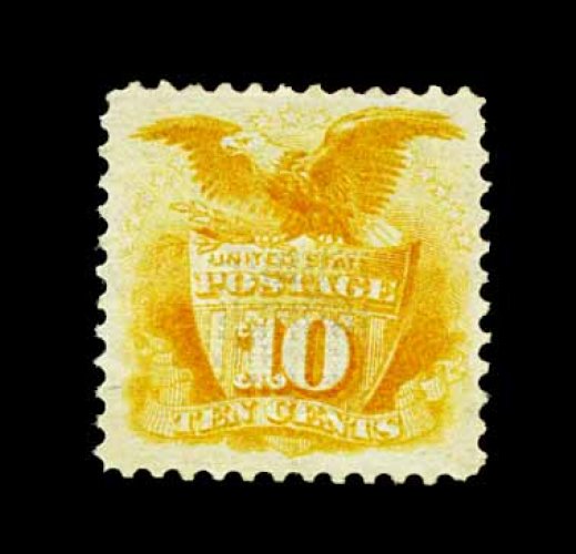 106 og 116 image#116, 10c Yellow, a magnificent quality mint example of one of the most challenging values from the 1869 Pictorial series to find in premium condition, fabulously fresh and bright, with gorgeous vibrant color not affected by oxidization as so often seen, strong detailed impression, marvelously well centered within large margins, especially clean full o.g. that has been only lightly hinged, extremely fine; one of the very few existing gem examples still retaining its original gum; 2001 PF certificate. (Image) 2,000.00