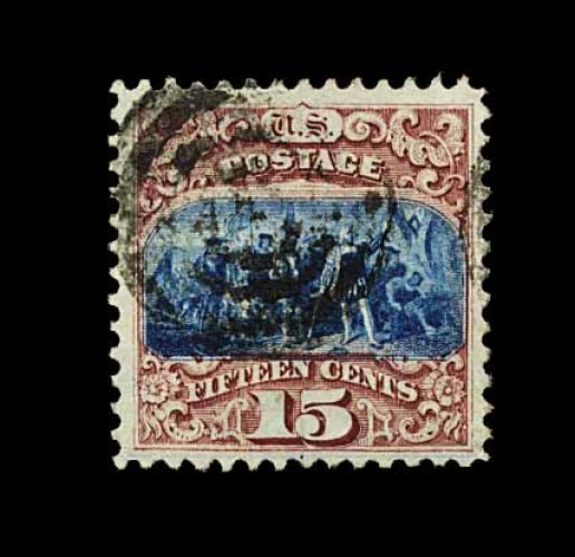 116 og 122 image#122, 90c Carmine and black, an incredibly choice mint example of this 19th century rarity, possessing outstanding and eye-arresting physical qualities, perfectly centered within incredibly large margins, just as impressive are this stamp's spectacularly intense colors and clarity of the impressions on fresh paper, large part o.g. (approaching full o.g.), extremely fine; a stunning and choice original gum example of the Ninety Cent 1869 Pictorial; one of the finest #122's to appear on the market in the past several years; signed Stanley Gibbons and accompanied by a 1988 PF certificate. (Image) 9,250.00
