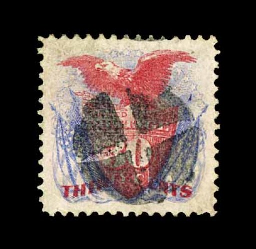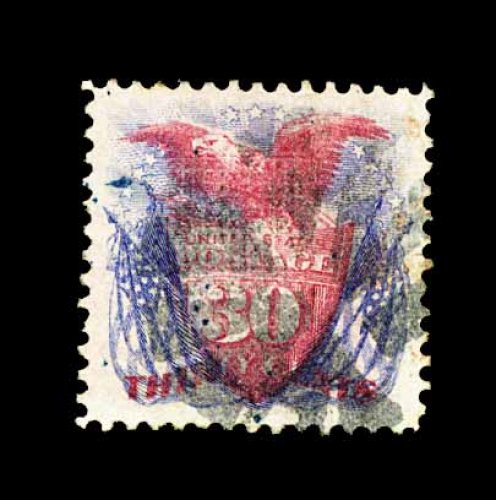 114 O 121 image#121, 30c Blue and carmine, flawlessly centered within extra-large margins, unusually rich colors on fresh paper, light segmented cork cancel, extremely fine and quite attractive; 2001 PF certificate. (Image) 550.00