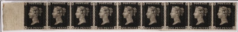 132 ng imageAA-AI black (S.G. Spec. AS56), the spectacular unused horizontal strip of nine with 18 mm. sheet margin at left, radiant colour and impression, large to clear margins showing portion of adjoining stamp at right, a few light vertical creases, extremely fine and fresh; believed to be the largest recorded multiple from this scarce plate; ex-Shaida. (Image) Est. £16,000-20,000