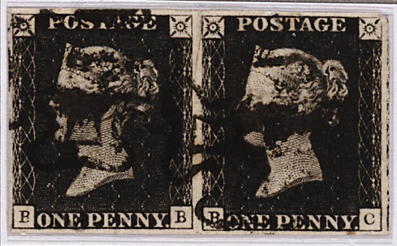 146 Obl imageEG-FH black (S.G. Spec. AS66), an extremely rare used block of four with very large margins all round showing portions of two adjoining stamps, Maltese Cross cancellations in red, some light soiling and oiliness from the cancellation, otherwise a very fine and highly significant multiple, as this is the only used block recorded in private hands (the largest such block in the National Postal Museum is also only a block of four); ex-Shaida and "Tes". (Image) Est. £1,200-1,500