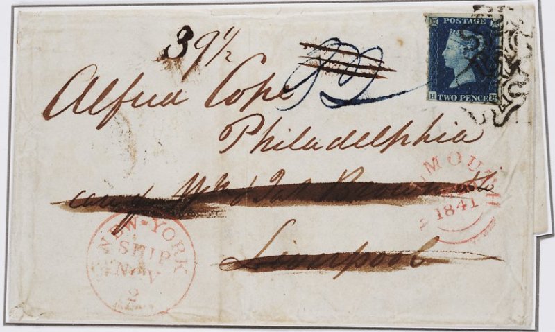 from Falmouth to Philadelphia, care of forwarding agent in Liverpool (22.9)