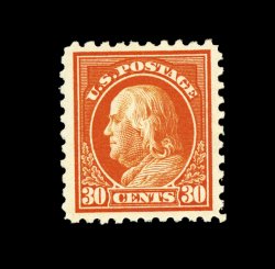 242 og 439 image#439, 30c Orange red, marvelously well centered within large margins, deep luxuriant color, o.g., lightly hinged, extremely fine. (Image) 260.00
