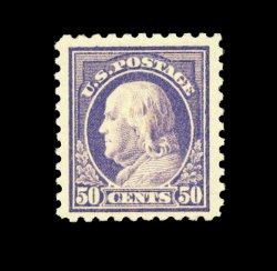 243 og 440 image#440, 50c Violet, quite fresh, rich luxuriant color and impression, well centered, o.g., technically n.h., although the presence of a light fingerprint on the gum may cause the PF to issue a "previously hinged" certificate if resubmitted, very fine; 1991 PF certificate (never hinged by omission period). (Image) 550.00