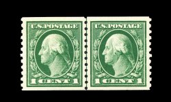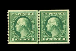 252 nh 452 image#452, 1c Green rotary coil, perf. 10 vert., joint line pair, brilliantly fresh, strong color, well centered, o.g., n.h., choice very fine. (Image) 130.00