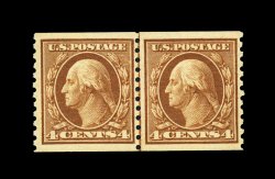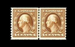 258 nh 457 image#457, 4c Brown rotary coil, perf. 10 vert., joint line pair, "post office" fresh, rich luxuriant color and a strong impression, well centered, o.g., n.h., choice very fine; 1995 PF certificate. (Image) 270.00