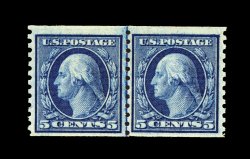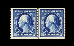 251 og 449 image#449, 2c Red rotary coil, Ty. I, perf. 10 horiz., an especially choice and eye-appealing mint pair of this coil rarity, featuring a remarkable overall freshness for this difficult issue, plus it is one of the nicest centered pairs overall that we have had the pleasure to offer, with larger margins than typically found, beautiful fresh color in the distinctive red shade, full clean o.g., lightly hinged, extremely fine; a gem pair of one of the rarest of all regularly issued United States coils; 1984 PF certificate. (Image) 5,750.00