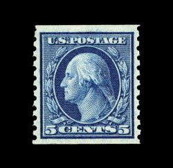 259 nh 458 image#458, 5c Blue rotary coil, perf. 10 vert., large perfectly balanced margins all around, brilliantly fresh and crisp, deep rich color, o.g., n.h., extremely fine; gem certified coil singles are a challenge to find; 1996 PF certificate; ex-Billington. (Image) 55.00