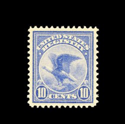 299 nh E10 image#E10, 10c Pale ultramarine, a fabulous quality mint example, possessing several exceptional physical qualities, not the least of which is its mathematically precise centering amid generously large margins, plus its color and impression are truly prooflike on immaculate paper, even its perforations are uncommonly full and intact, o.g., n.h., extremely fine gem; one of the finest never hinged #E10's available; 1996 PF certificate. (Image) 500.00
